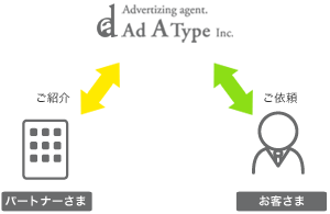 アドエータイプでは弊社で受けた業務をパートナーさまにご紹介させていただきます。